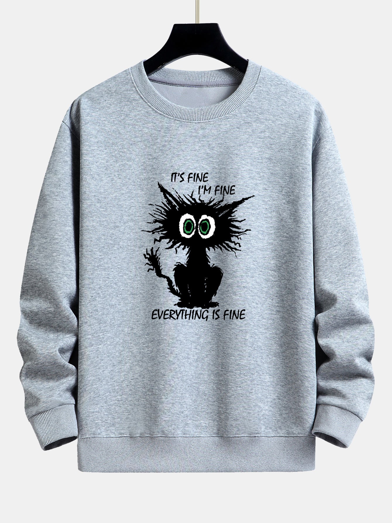Scribbled Black Cat Print Relax Fit Sweatshirt