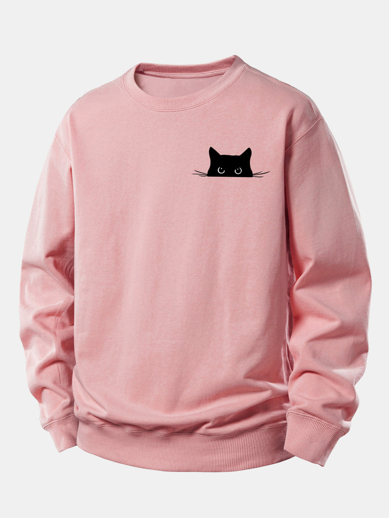 Black Cat Print Relax Fit Sweatshirt